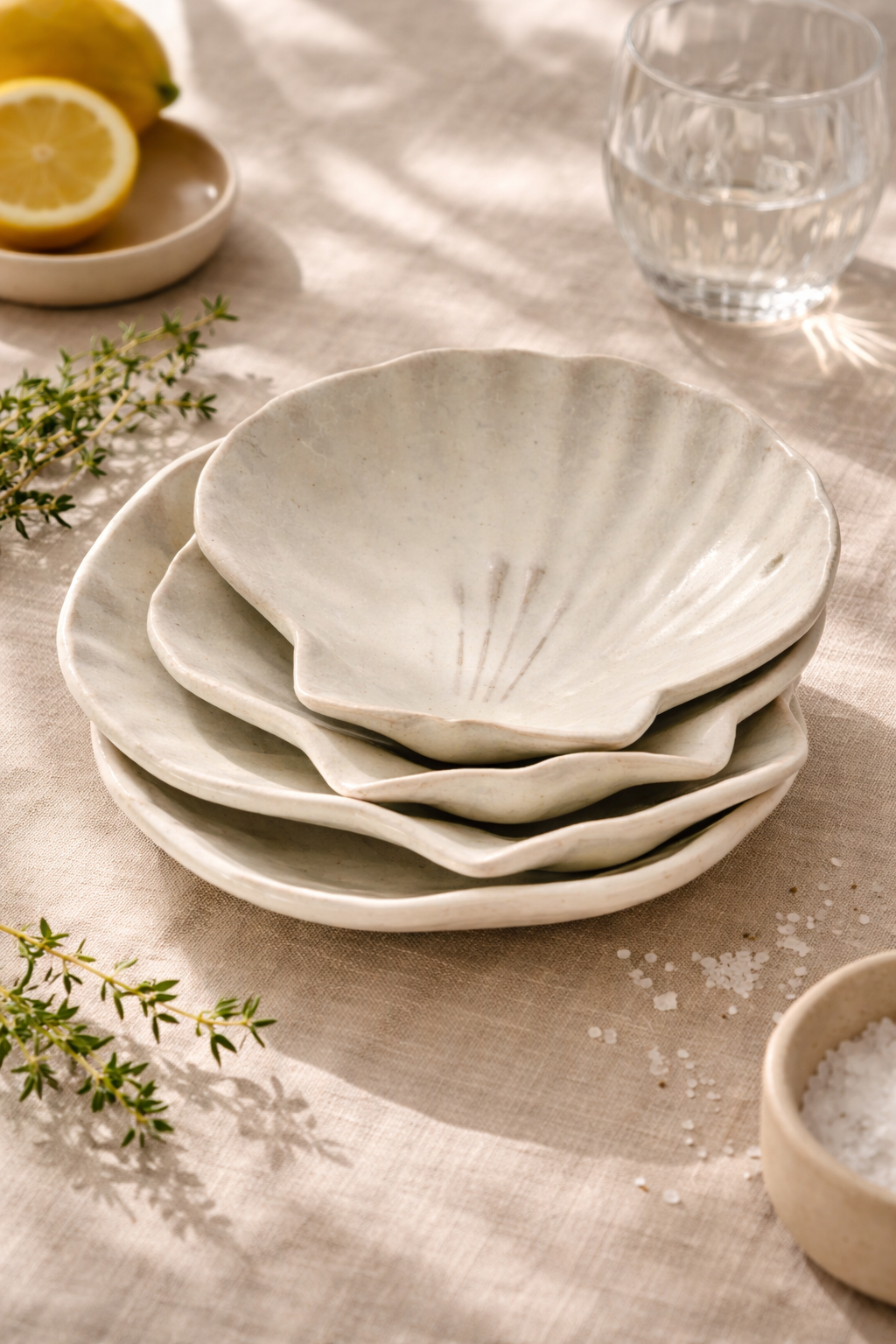 Disse håndlavede muslingeskaller i stentøj er skabt med fokus på både æstetik og anvendelighed. Den organiske form og den levende glasur giver hver muslingeskal sit helt eget udtryk – ingen er ens, og netop dét gør dem særlige.