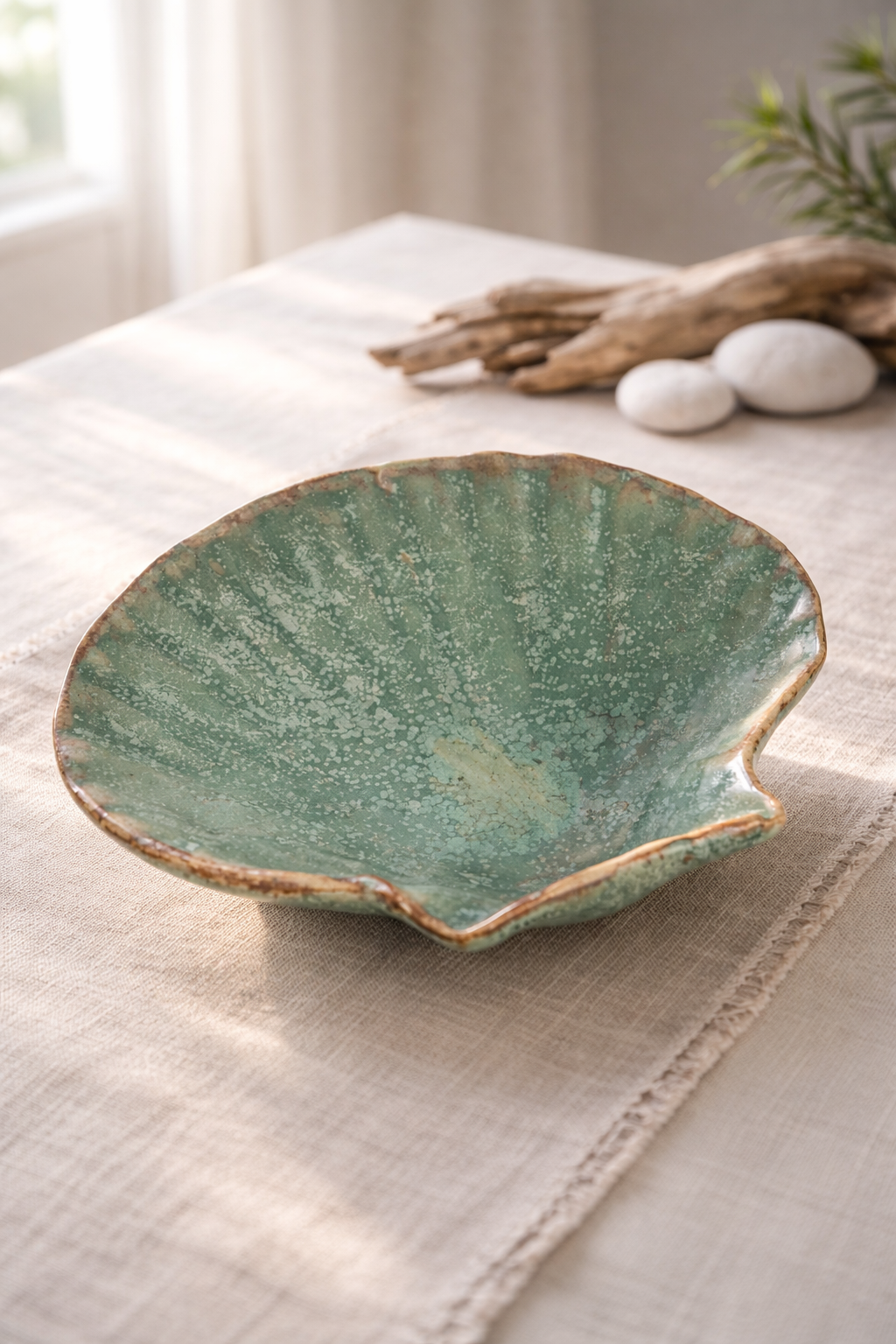 Disse håndlavede muslingeskaller i stentøj er skabt med fokus på både æstetik og anvendelighed. Den organiske form og den levende glasur giver hver muslingeskal sit helt eget udtryk – ingen er ens, og netop dét gør dem særlige.